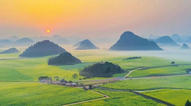上午:乘车前往罗平县(车程约2.5小时)。抵达后,前往金鸡峰丛。冬季的峰林间常飘渺着晨雾,午后阳光铺洒,构成绝佳的光影大片。