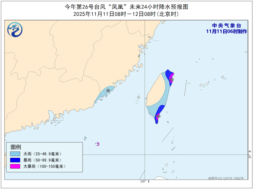 降水预报:11日8时到12日8时,福建东南部、台湾岛东部和南部将有大到暴雨鸿岳资本配资,其中台湾岛东北部和东南部地区有大暴雨(100—150毫米)。